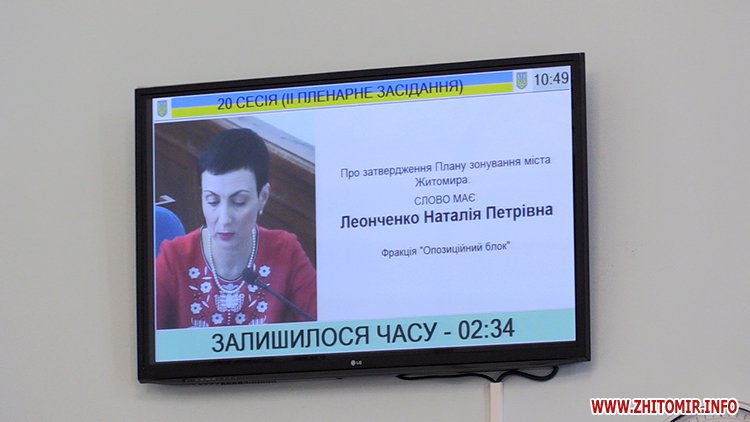 «У зв’язку з цим прошу першою поставити на голосування таку правку: другим пунктом у цьому проекті рішення прописати “надати дозвіл на розробку проекту землеустрою щодо впорядкування територій населеного пункту”. Якщо сьогодні зонінг затвердиться, то другим пунктом у цьому рішенні має бути надання дозволу на розробку проекту землеустрою щодо впорядкування території населеного пункту. І тоді у нас буде повністю дотримана процедура прийняття і генерального плану, і зонінгу, і ніхто не зможе у суді оскаржувати наші рішення», – сказала Наталія Леонченко.