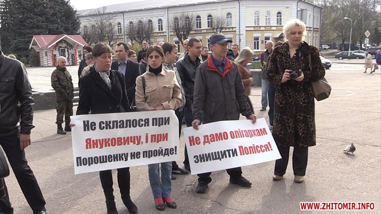 Вранці 6 квітня під стінами Житомирської обласної ради збираються люди. В руках вони тримають плакати і збираються йти до сесійної зали. Кажуть: прийшли висловити свій протест проти розробки ільменітових родовищ у Народицькому районі. Люди переконані: це остаточно знищить екологію навколо їх села.