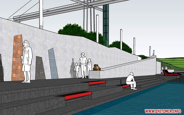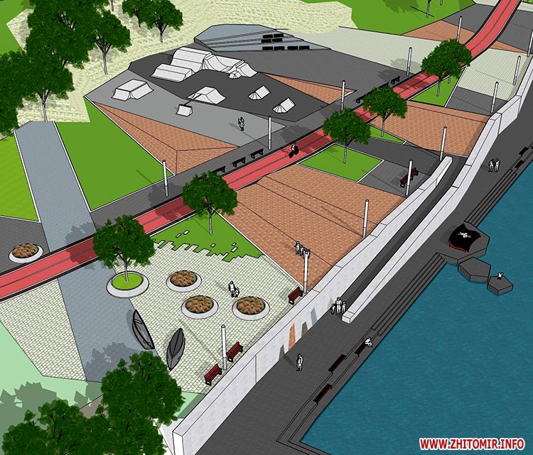 «Це концепт набережної, якою ми хочемо її зробити. Під мостом – зона активного дозвілля. Ось так буде виглядати наша набережна. Це нормальний, сучасний підхід, зручна для людей, людиноорієнтована. Там буде зручно гуляти, сидіти, відпочивати з дітьми. Це буде впорядкована набережна із зонами тихого відпочинку, гарно впорядкована, із зонами активного відпочинку. Доступність там буде певним чином обмежена, бо географічно це внизу. Тобто, треба буде спуститись. Звичайно, що в першу чергу воно буде розраховано для молоді, для активної молоді. Там буде передбачена спортивна локація: скейт-парк, роллердром, де люди зможуть активно проводити час. Мені здається, що це буде гарно та красиво», - вважає заступник мера Житомира.