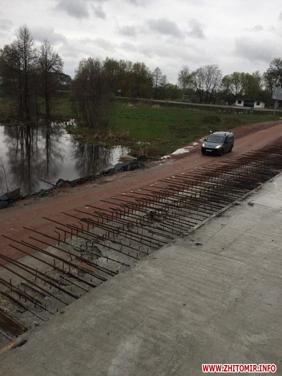 Нагадаємо, звільнений начальник Служби автомобільних доріг у Житомирській області Олег Антонюк розповідав, що міст в селі Рижани через річку Ірша почали будувати у 2016 році.