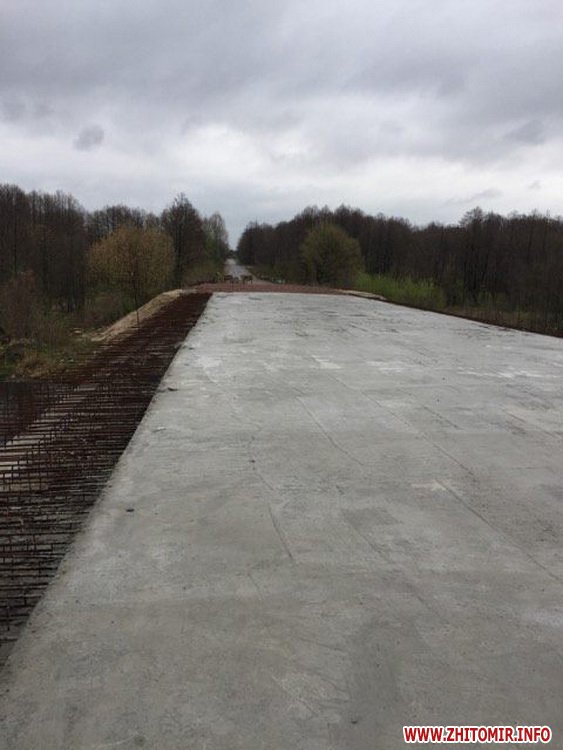 Мінінфраструктури повідомляє, що будівництво нового мосту через річку Ірша в селі Рижани Житомирської області розпочато у 2012 році. Загальна кошторисна вартість робіт складає 13,5 млн.грн. Завершення робіт вартістю 4,7 млн. грн заплановано на 2017 рік. Реалізацію зазначеного об’єкту заплановано здійснювати за рахунок кредитних коштів, залучених Укравтодором у попередні роки.