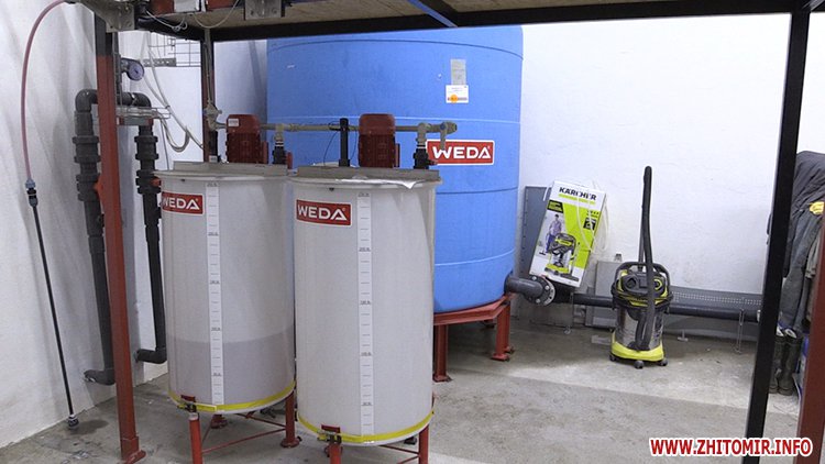 «Тут наші резервуари з водою, насосна станція. Ось по цим трубам подається каша у сараї. В бункерах кварцується каша, щоб унеможливити потрапляння мікробів. Апарати для роздачі медикаментів, також резервуари для очищення системи. Намагаємось один раз на тиждень проводити очищення труб, щоб у подальшому у нас не було заражень», - пояснює начальник відділу тваринництва ТОВ «ДФУ Агро» Влад Ткаченко.