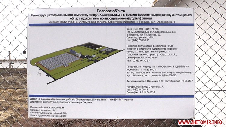 У селі Грозино, що на Житомирщині, триває будівництво сучасного тваринницького комплексу з іноземними інвестиціями ТОВ «ДФУ Агро». Нині, тут вже побудували та ввели в експлуатацію три бункери для силосу, розраховані на 9 тис. тонн зерна, кормокухню та два свинарники. Будують комплекс у відповідності до стандартів виробництва свиноферм в Данії, головний з яких - суворе дотримання біобезпеки.