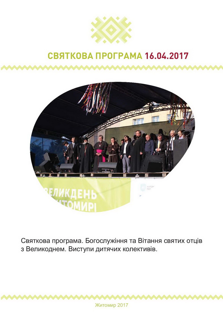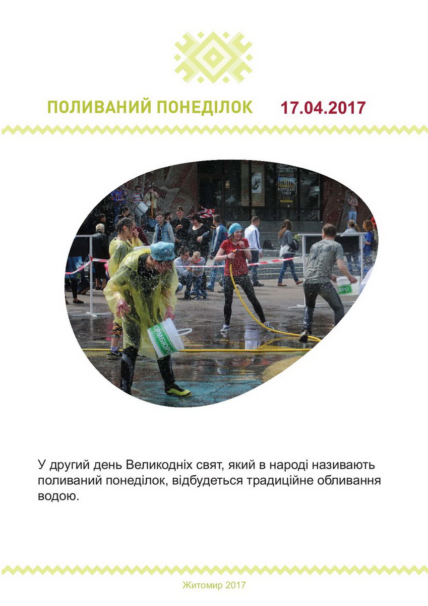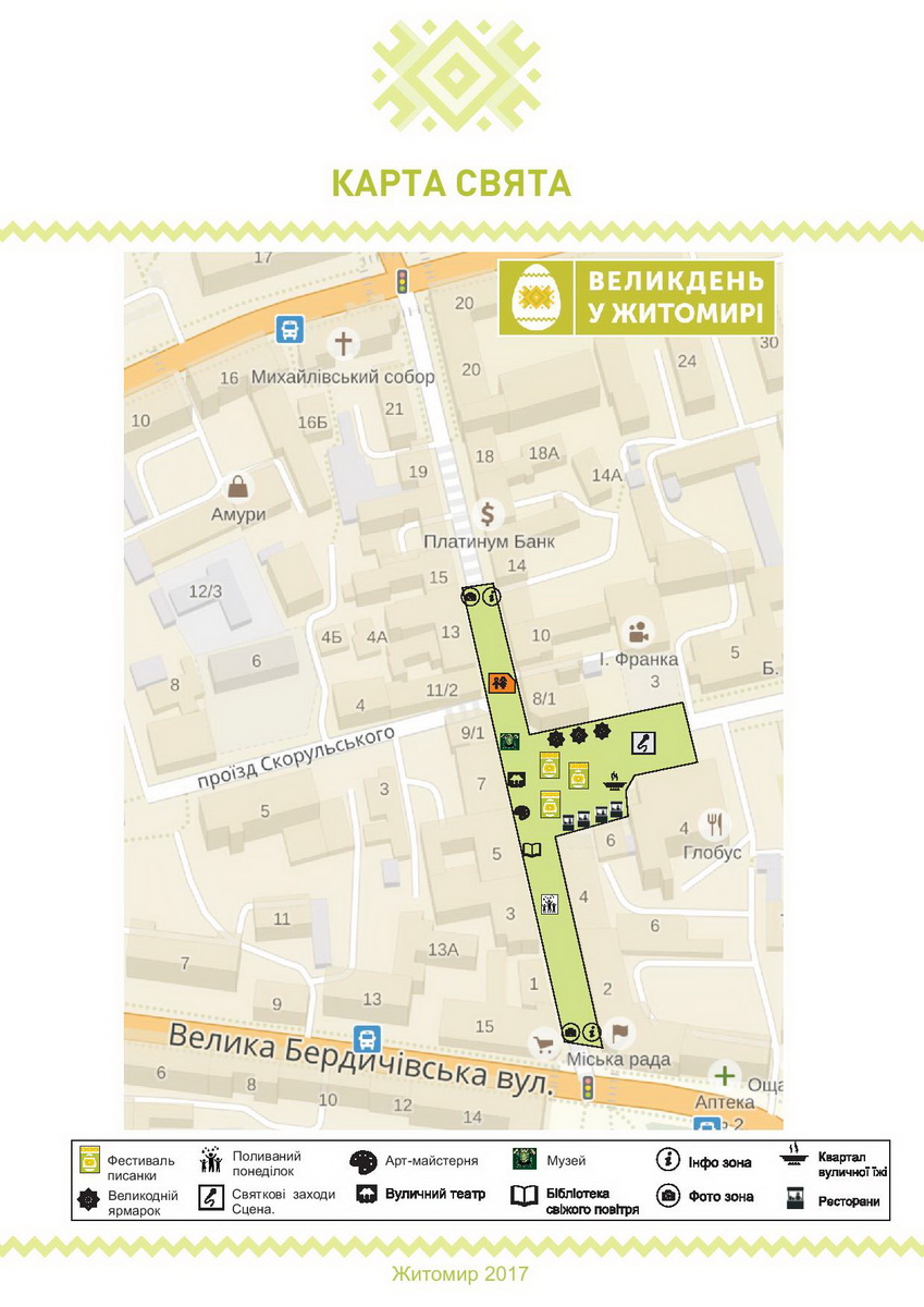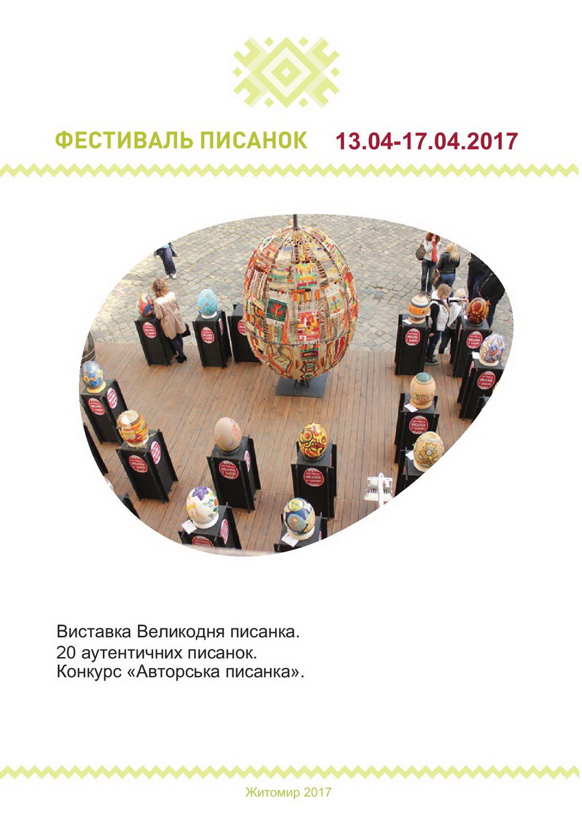 Святкові заходи з нагоди Великодня у Житомирі цьогоріч триватимуть упродовж 13-17 квітня. Упродовж цього часу в місті зокрема відбуватиметься Великодній ярмарок.