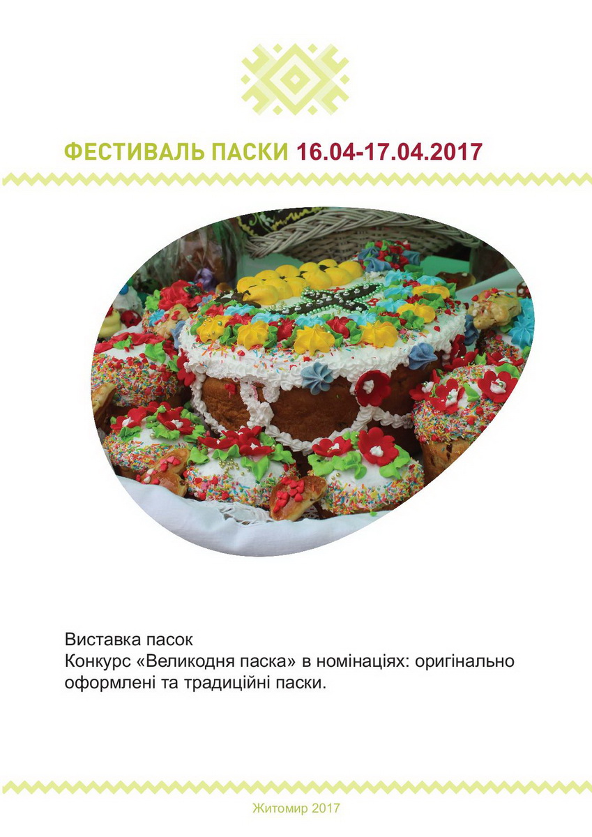 Протягом 16-17 квітня у Житомирі триватиме фестиваль паски, під час якого проведуть конкурс на оригінально оформлені і традиційні вироби.