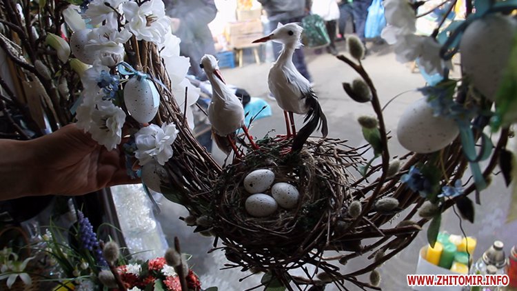 А тих, хто хоче не лише смачно попоїсти, а й прикрасити свято, до свого магазинчику припрошає пані Галина. Тут і декоративні півники з крашанками, і великодні композиції. За ось таке куряче гніздечко потрібно буде викласти не менше 40 грн, а ось ця композиція із лелеками коштуватиме 750 грн. Однак, у магазині запевняють: святкову композицію можна зробити і дешевше.