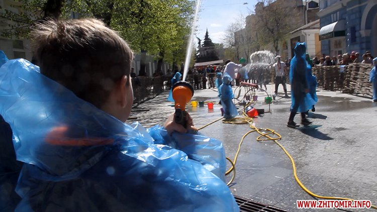 Кілька десятків дорослих та дітей зібрались опівдні 17 квітня на Михайлівській у Житомирі, щоб відзначити Поливаний понеділок. За словами людей, котрі зібрались у спеціальній зоні на пішохідній вулиці, їх прохолодна погода не зупинить. Дехто приїхав з дітьми навіть зі столиці, щоб взяти участь у цьому дійстві.