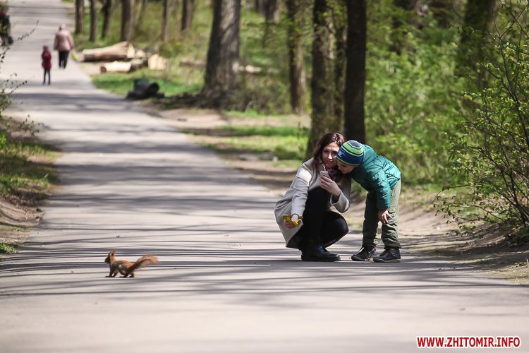 Більш людним стає і житомирський гідропарк навіть в будні дні. 18 квітня фотокореспондент Житомир.info побачила як в парку маленькі жителі обласного центру підгодовують білок, й людей, які в сонячну погоду просто прогулюються гідропарком в теплих куртках, а також декілька відпочивальників, які вже почали засмагати.