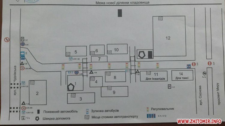 У Житомирі в поминальні дні, 23 квітня, з 7-ї години ранку, відбудеться перекриття дорожнього руху.