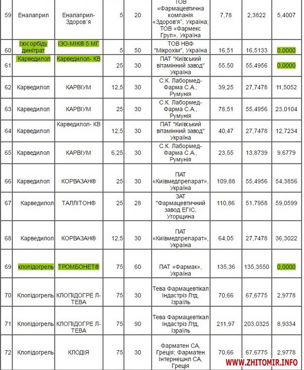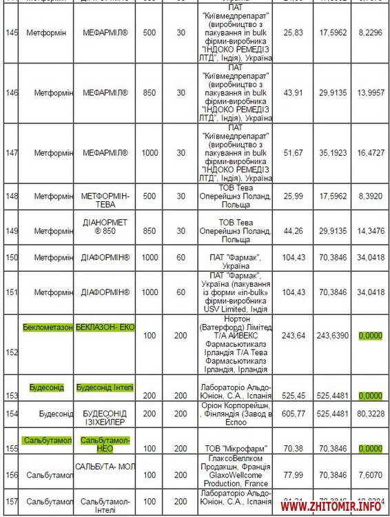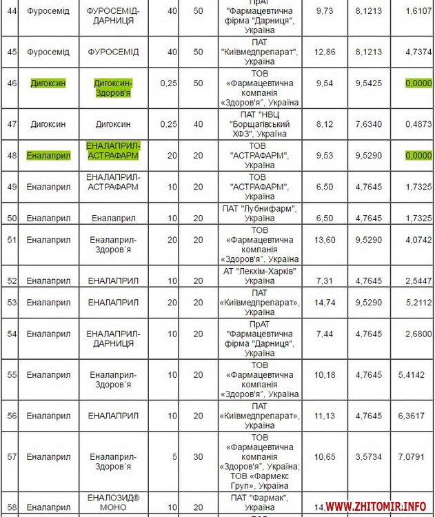 Перелік аптек Житомира, які беруть участь у програмі «Доступні ліки», тут, аптек області – тут.