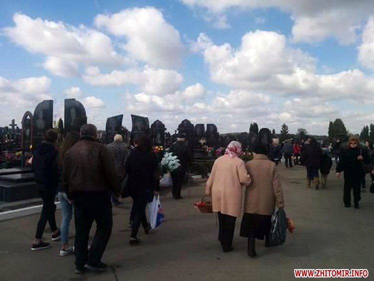 У неділю, 23 квітня, житомиряни масово їдуть на кладовище до могил родичів. З самого ранку на міському кладовищі «Дружба», що за гідропарком, сотні людей, торговці штучними квітами, жебраки, священики і поліція. Великі черги до вбиралень.