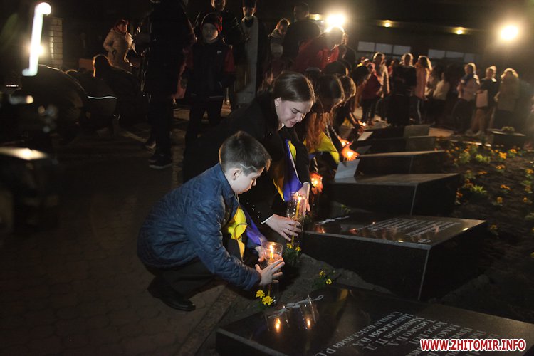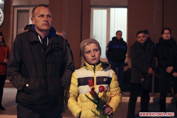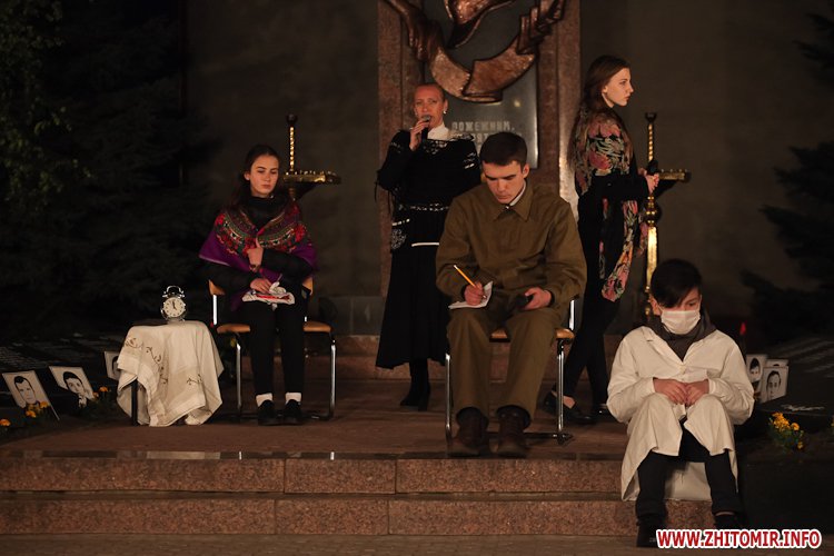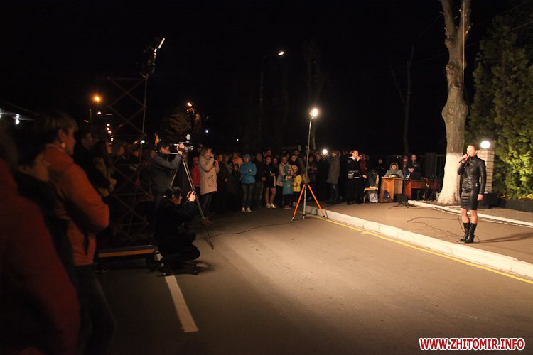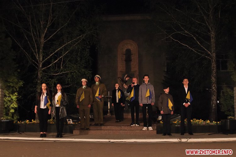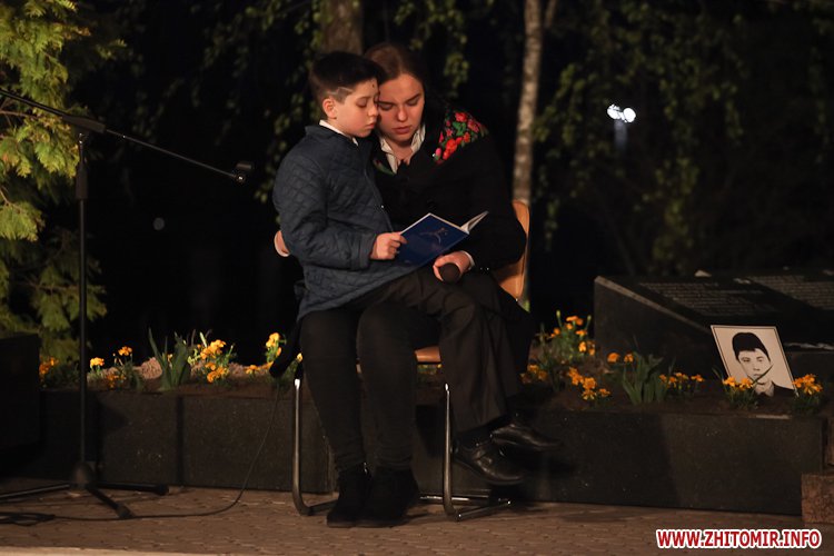 Під час заходу на широкоформатному екрані транслювалися документальні кадри тих подій. Також житомирські школярі представили театралізовану літературно-музичну композицію, яка відтворює перші години після аварії, розповість про долю і останні дні життя перших шести вогнеборців, а також про невідомі сторінки катастрофи.