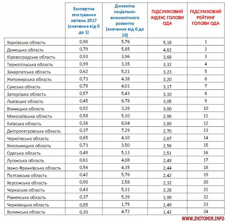 Повністю аналіз рейтингу голів ОДА читайте тут