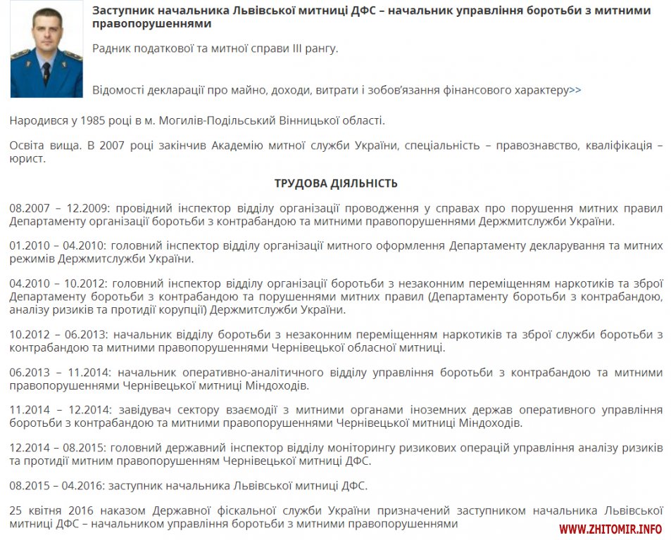 Зазначається, що Мірошніченко Михайло Іванович – радник податкової та митної справи ІІІ рангу, він працює на посаді заступника начальника Житомирської митниці ДФС – начальника управління протидії митним правопорушенням.