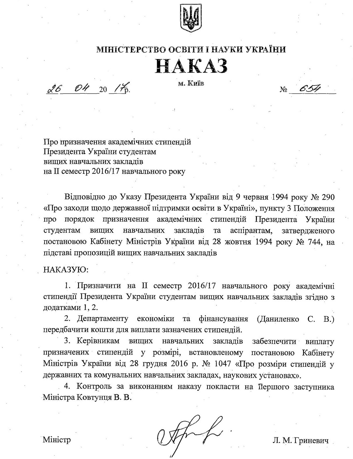 Про це йдеться у наказі Міністерства освіти і науки України №654 від 25.04.2017 р.