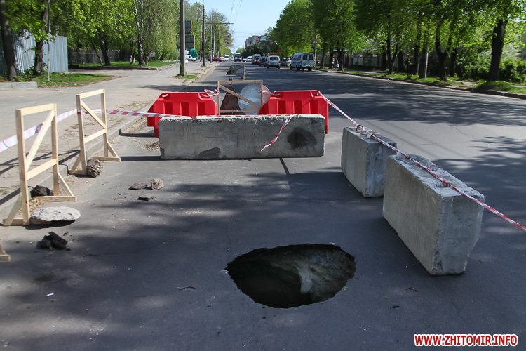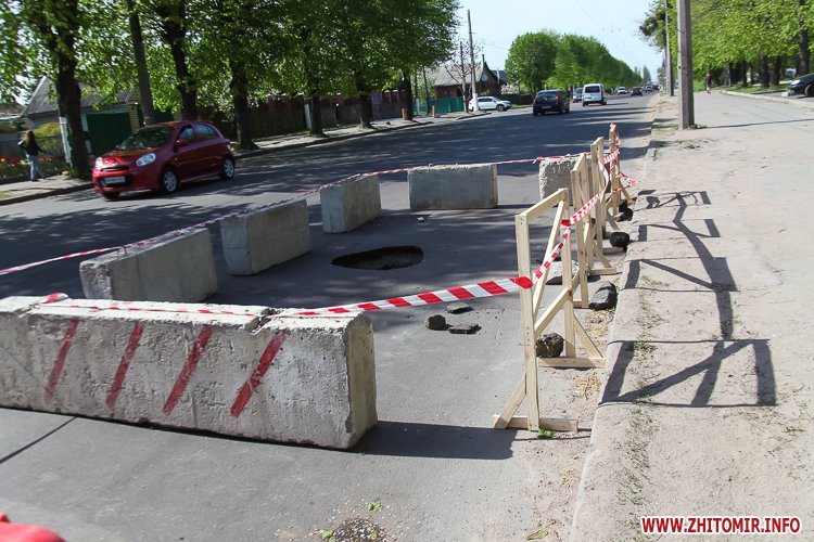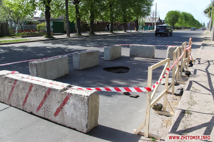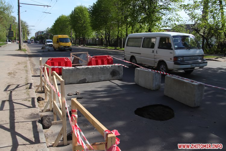 У зв’язку з провалом асфальту в Житомирі частково перекрита дорога на вул. Східна.