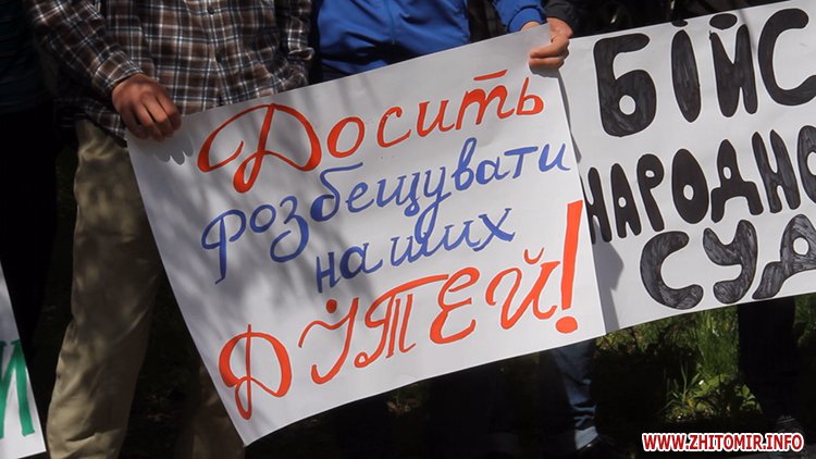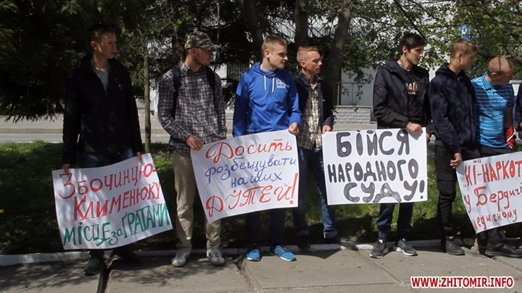 Люди з плакатами, які вишикувалися біля суду, розповідають: вони не навчаються у Бердичівському медколеджі, втім об’єдналися проти скандально відомого директора.