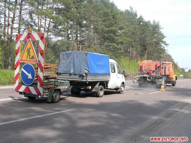 «Станом на 4 травня верхнім щебенево-мастиковим шаром асфальтобетону влаштовано майже 6 з половиною кілометрів напрямку Житомир – Бердичів (правий проїзд). Роботи проводяться під постійним контролем представників лабораторії та фахівців технічного нагляду Служби. Крім того, в межах експлуатаційного утримання автомобільних доріг загального користування на замовлення Служби автомобільних доріг у Житомирській області тривають роботи з відновлення дорожнього полотна шляхом ліквідації ямковості. На даний час підрядними організаціями активно ведуться роботи на автомобільних дорогах: Р-28 Виступовичі-Житомир, Р-49 Васьковичі-Шепетівка, Н-03 Житомир-Чернівці та Р-32 Кременець-Біла Церква-Ржищів; розпочато роботи на Р-31 Бердичів-Хмільник-Літин. За тиждень на шляхах загального користування Житомирської області було усунено більше 5,5 тисяч квадратних метрів пошкоджень, з них на шляхах місцевого значення – близько 3,5 тис. кв. м», - йдеться у повідомленні.