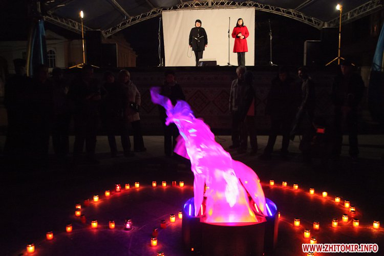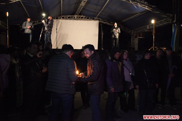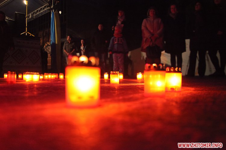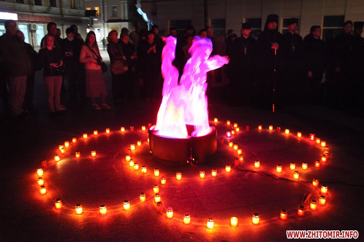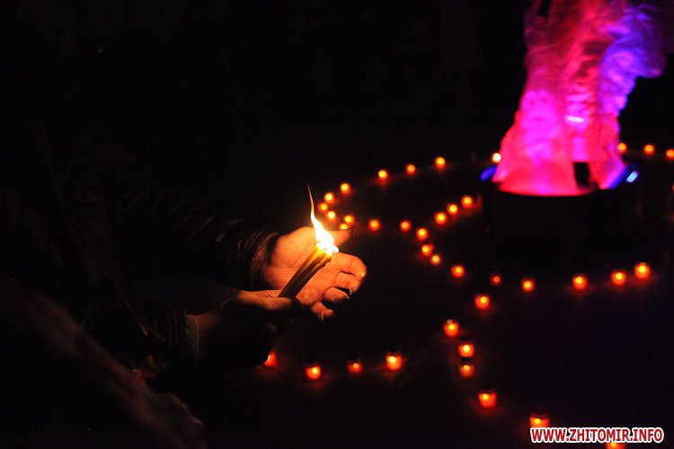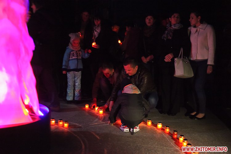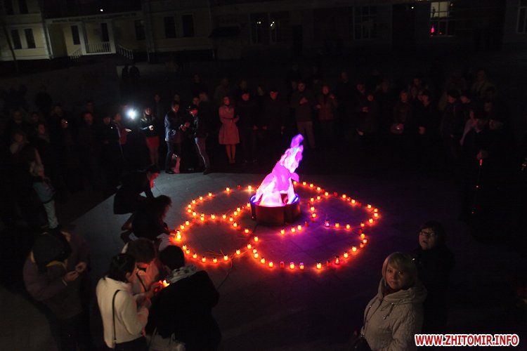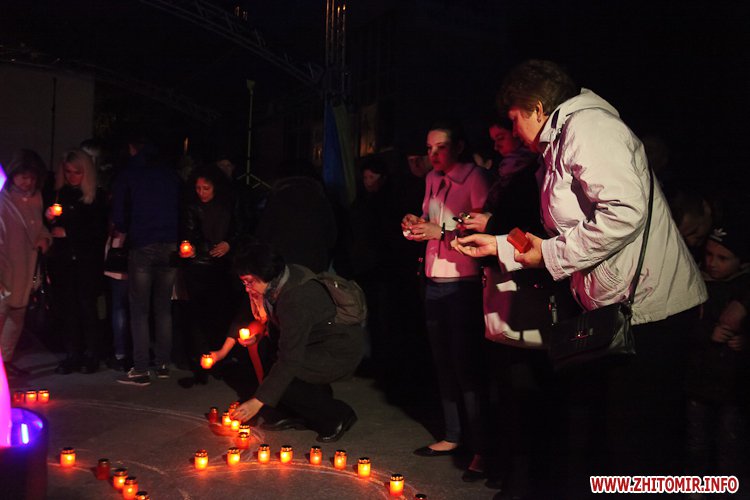 О 23 годині, після спільного виконання Гімну України, молебню за мир та виступів артистів Житомирського міського Палацу культури, присутні запалили лампадки та розташували їх у вигляді квітки маку з «палаючою» серцевиною – символу пам'яті про загиблих захисників.