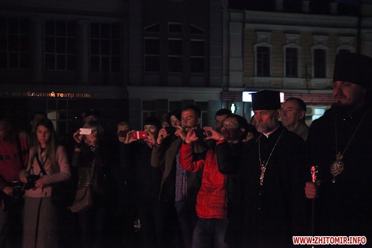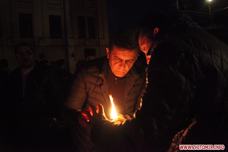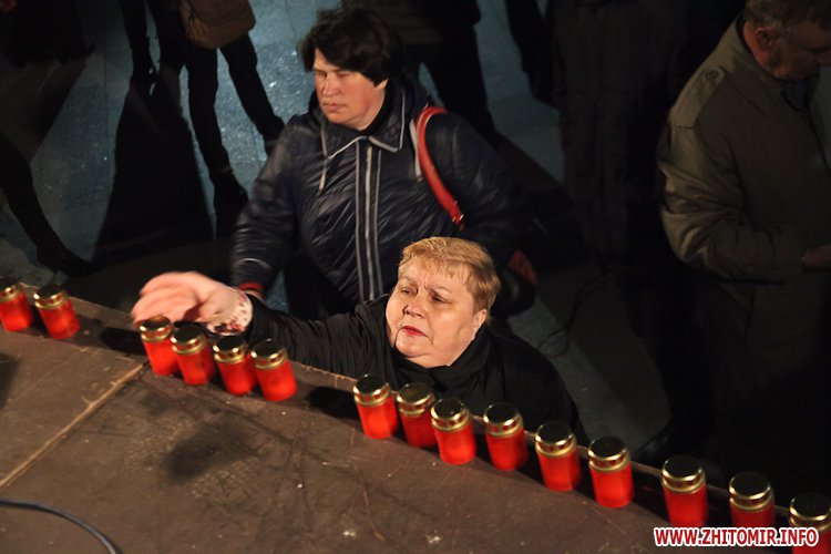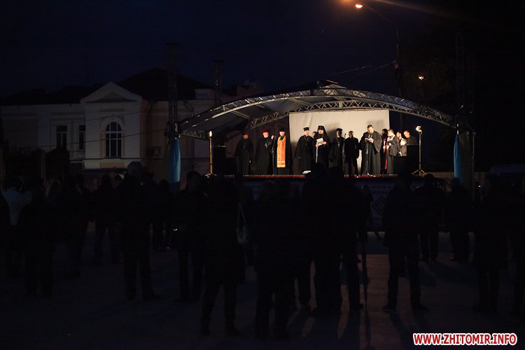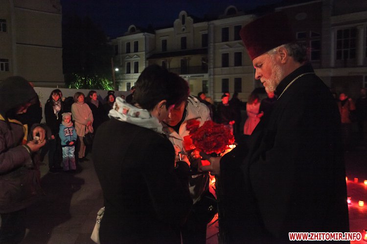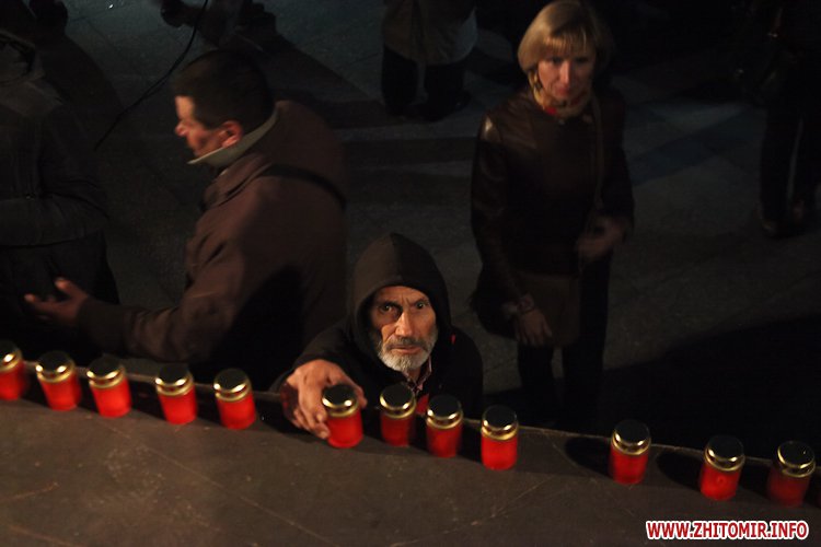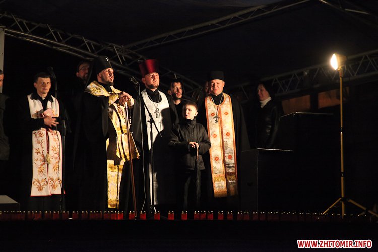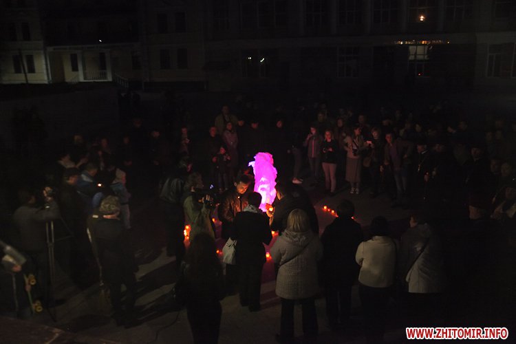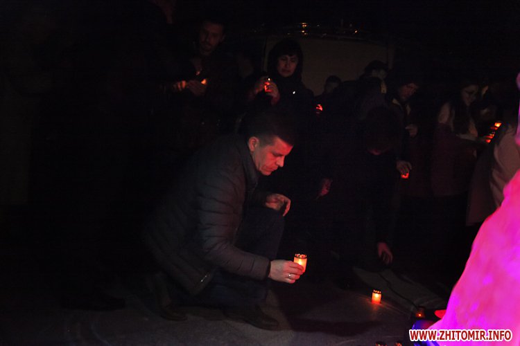 О 23 годині, після спільного виконання Гімну України, молебню за мир та виступів артистів Житомирського міського Палацу культури, присутні запалили лампадки та розташували їх у вигляді квітки маку з «палаючою» серцевиною – символу пам'яті про загиблих захисників.