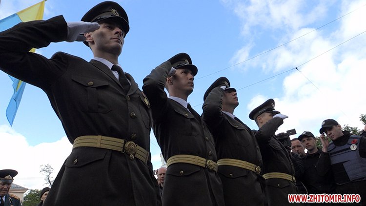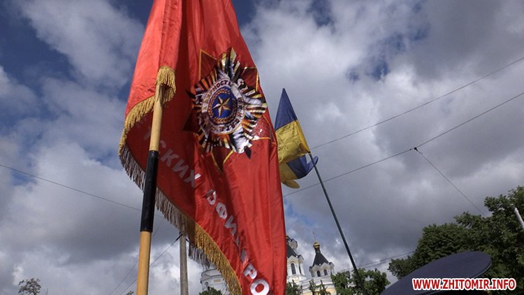 «Цей прапор має зірку, згортайте. Попереджаємо, є 466 стаття, прим. 1, згорніть, будь ласка, прапор», - звернувся до ветерана начальник сектору управління превентивної діяльності ГУНП в Житомирській області Олександр Господарчук.