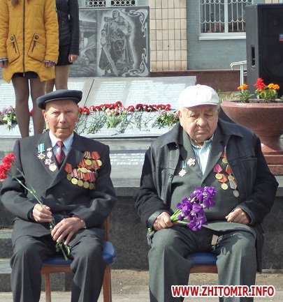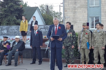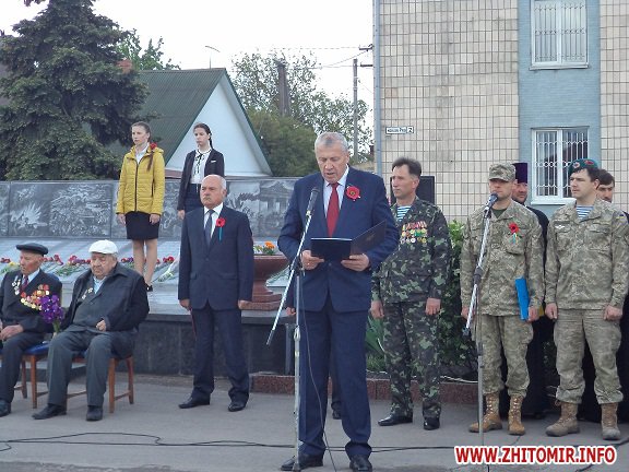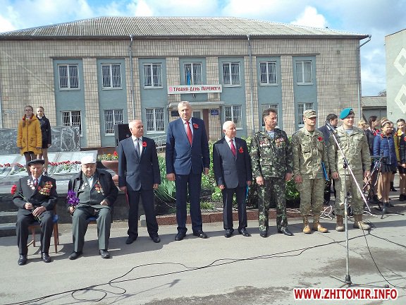 До ветеранів та присутніх звернулися голова районної державної адміністрації Павло Ігнатенко, голова районної ради Іван Бовсунівський, Черняхівський селищний голова Іван Бабицький, голова ради районної організації ветеранів Іван Долженко, голова громадської організації «Українська спілка ветеранів Афганістану (воїнів-інтернаціоналістів)» Леонід Жовтовський та т.в.о. районного військового комісара Черняхівського райвіськкомату Сергій Ночевчук. Керівники району подякували ветеранам за любов до Вітчизни, за здобутий мир та за активну громадську позицію. Адже всі ветерани в повоєнні роки брали безпосередню участь у відбудові нашої держави. Крім того, вони відзначали, що наш народ – лише за мир та партнерські стосунки з іншими державами, але у випадку посягань на територіальну цілісність, українці готові боронити свою суверенність та незалежність.
