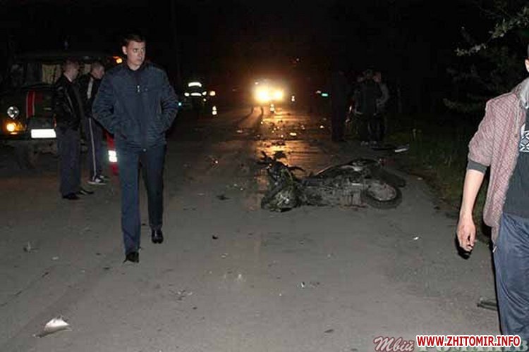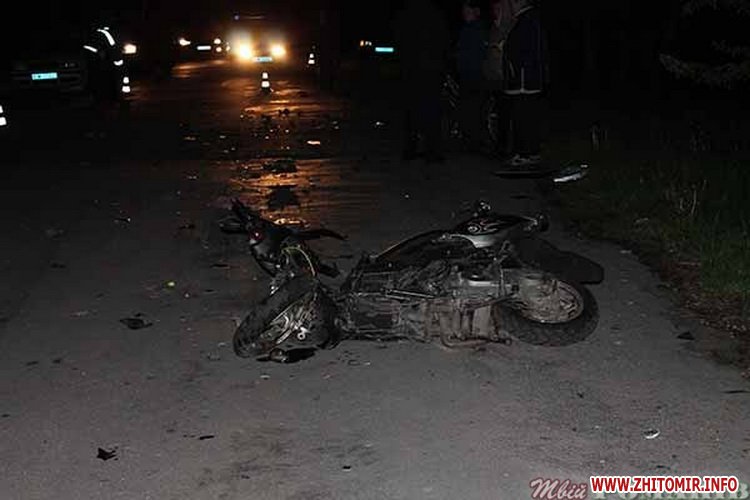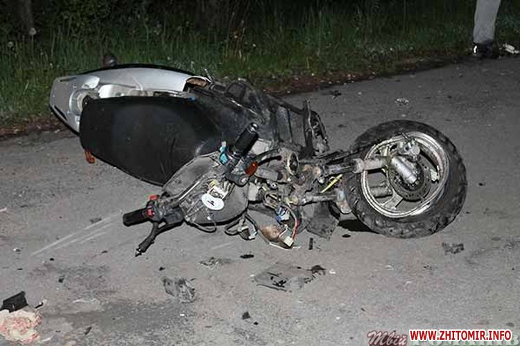«ДТП трапилася 9 травня близько 21 години в Романові, в районі склозаводу, на вулиці Заводській. На підйомі біля колишнього дитсадка зіштовхнулися автомобіль КІА і мопед. За повідомленням інспекторів поліції, зіткнення відбулося лоб у лоб, скутер виїхав на зустрічну смугу. Водій автомобіля пояснив поліції, що мопед їхав без увімкненого світла фар», - інформує видання.