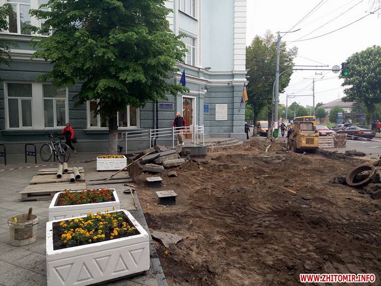 У суботу, 13 травня, біля Житомирської міської ради комунальники огородили прохід до вулиці Михайлівської.