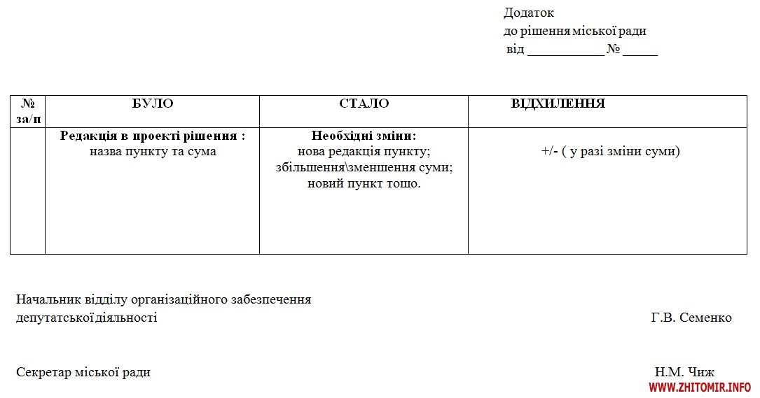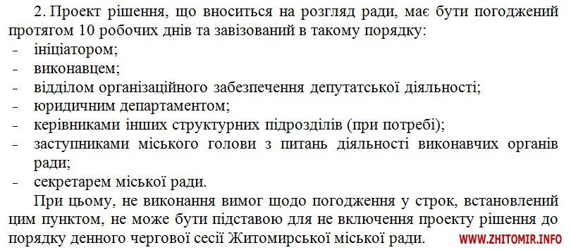«До пункту 2 статті 23 Регламенту Житомирської міської ради додати абзаци в наступній редакції: