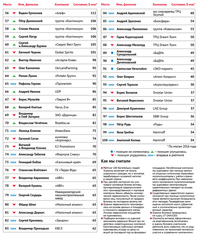 По информации «Фокуса», впервые в сотню богачей попал президент житомирской компании «Рудь» Петр Рудь – он с состоянием в 34 млн долларов занимает 98 место.