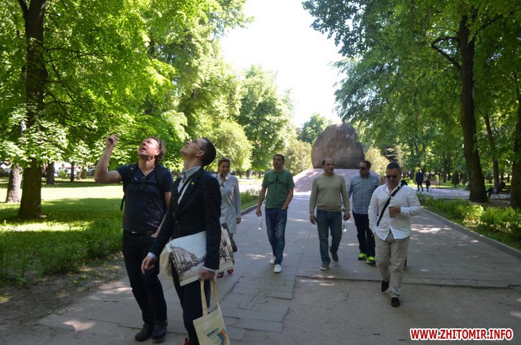 Далі гостям Житомира показали монумент Слави, після чого продовжили екскурсію в парку Гагаріна, де Микола Костриця розповів історію створення парку та його засновника барона де Шодуара.