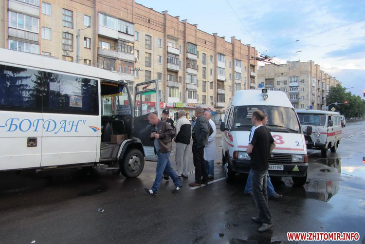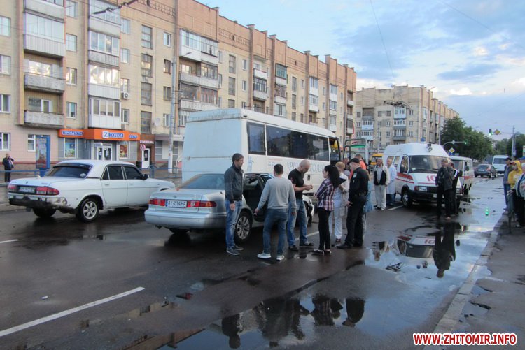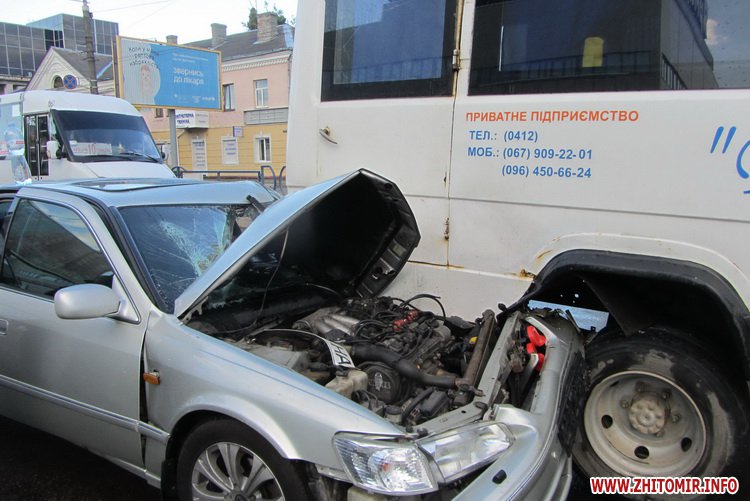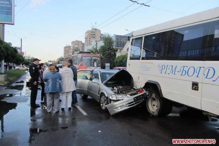20 травня у Житомирі біля регульованого перехрестя зіштовхнулися Toyota та автобус Житомир-Іршанськ.