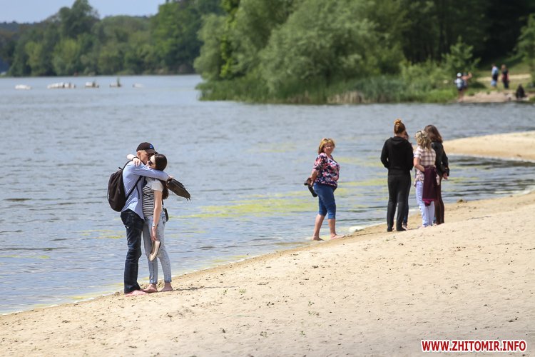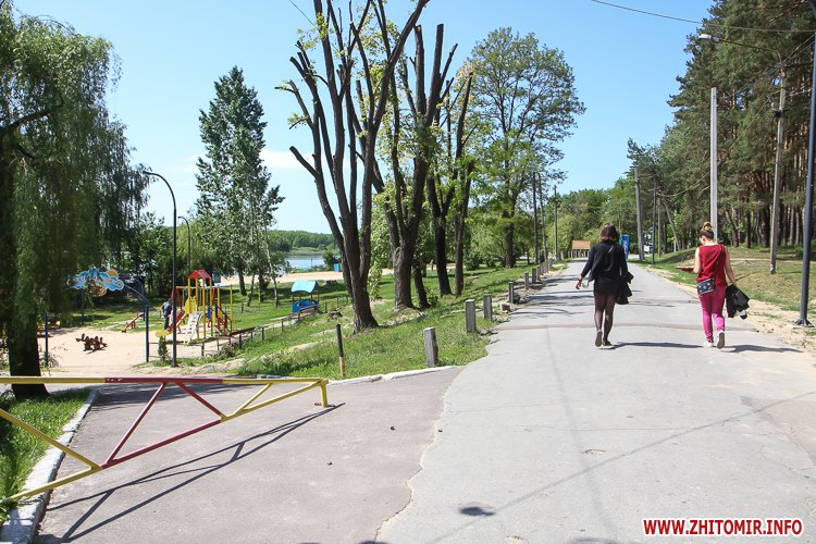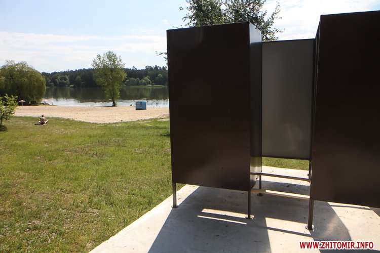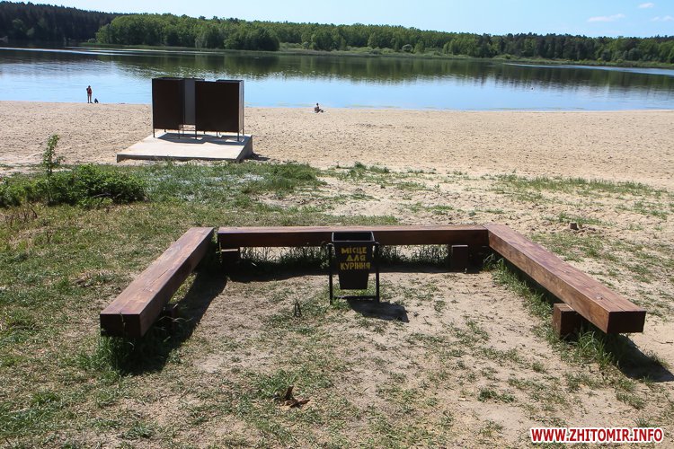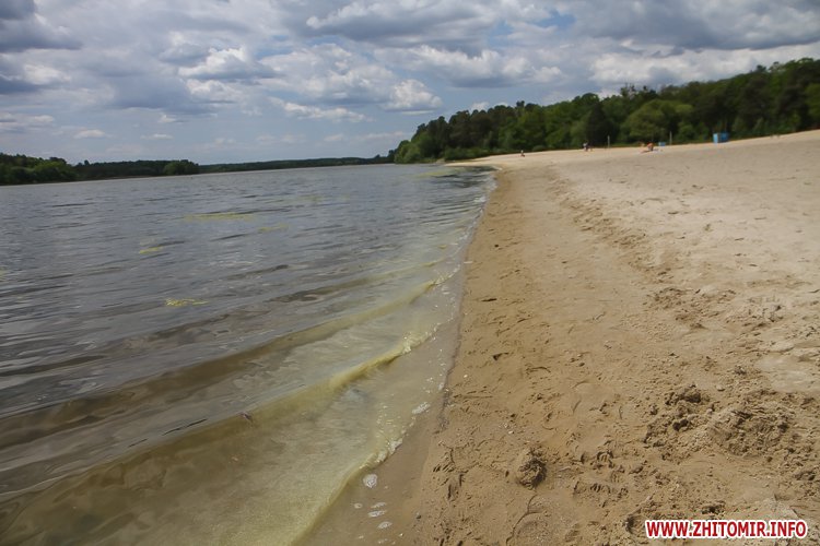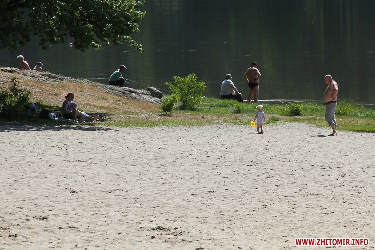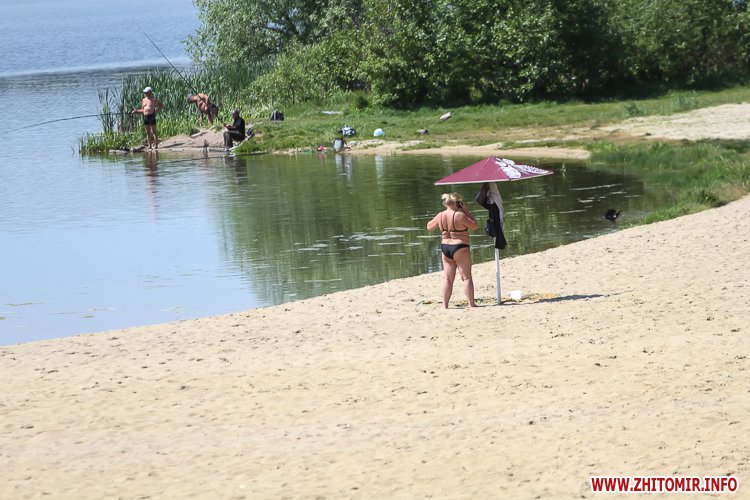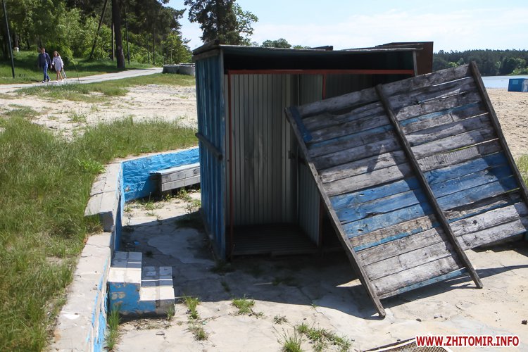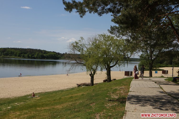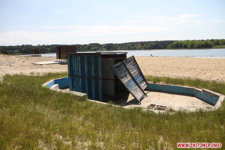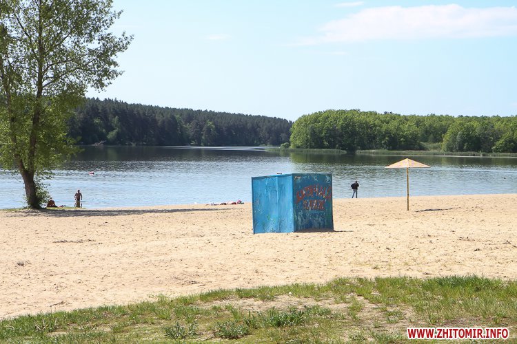 Люди не лише прогулюються доріжками, але купаються та засмагають, дехто топлес. На пляжі можна легко відшукати сміття, кришечки та кістки. Вода каламутна, у ній багато водоростей. Попри обіцянки нарешті побудувати три антивандальних туалети (навіть проекти відібрали) житомиряни будуть змушені ходити в старий, який перебуває в жалюгідному стані.