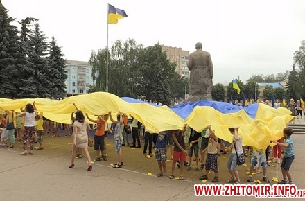 Як повідомляв Житомир.info, минулого року до 20-річчя Конституції України на майдані Корольова житомиряни разом із хоровою капелою «Орея» виконали державний гімн і розгорнули велетенський прапор розміром понад 200 квадратних метрів, кульмінацією свята став кольоровий флешмоб.
