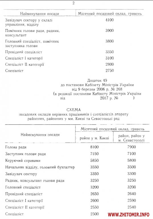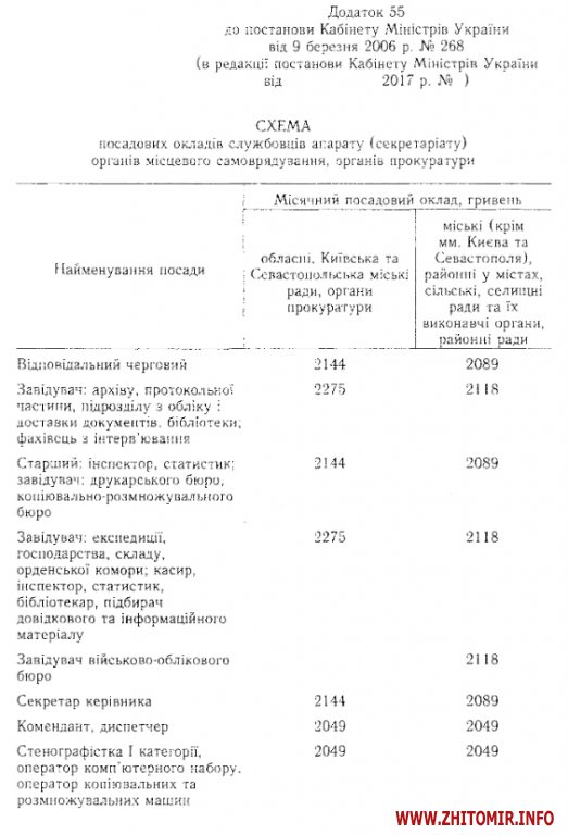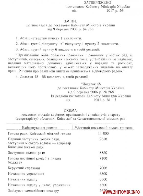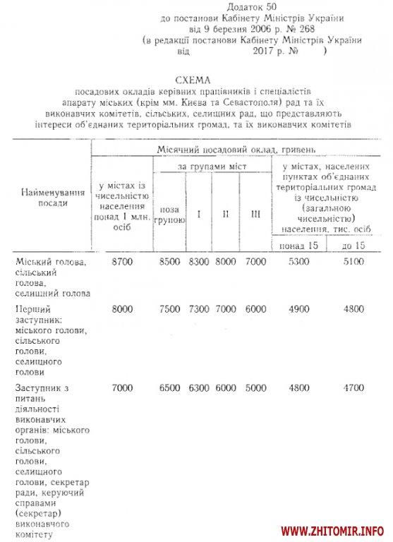 На засіданні 24 травня 2017 року Кабінет Міністрів України схвалив зміни до постанови Уряду від 09.03.2016 р. № 268 «Про упорядкування структури та умов оплати праці працівників апарату органів виконавчої влади, органів прокуратури, судів та інших органів», якими істотно підвищено посадові оклади посадових осіб місцевого самоврядування.