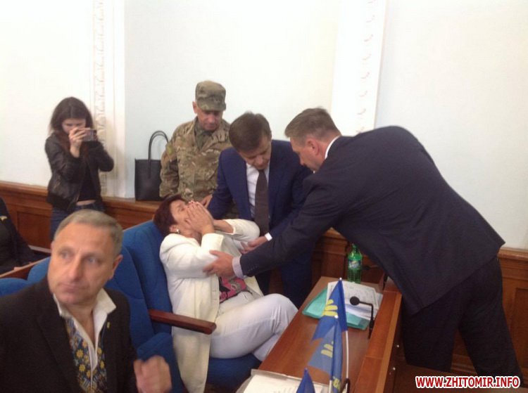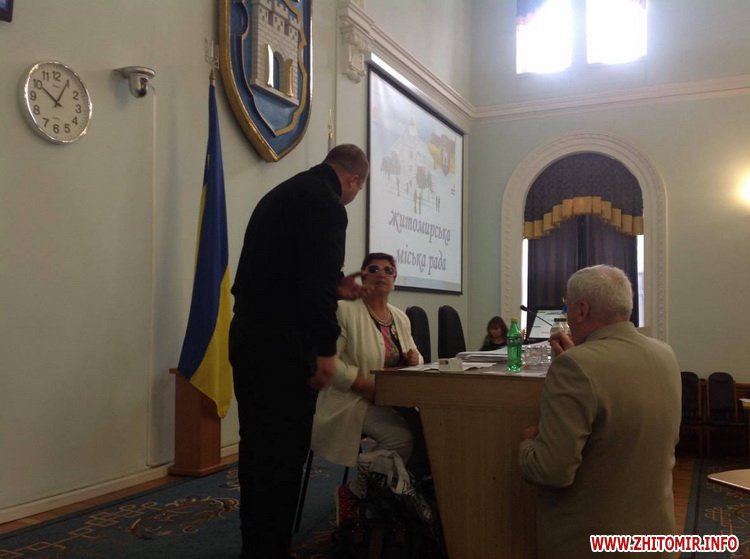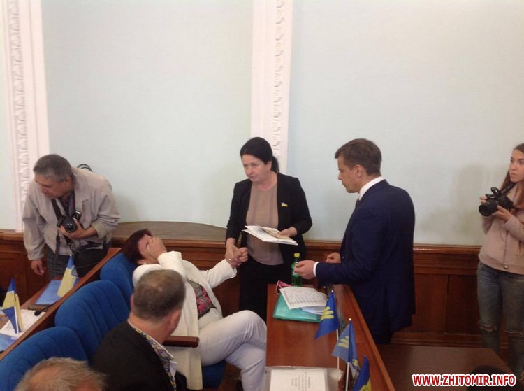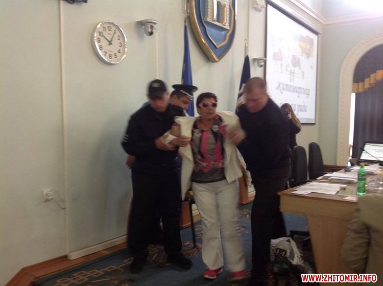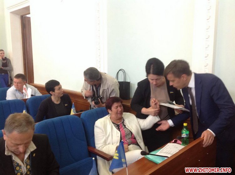 25 травня перед початком чергової сесії Житомирської міської ради місце у президії зайняла жінка. Вона заявила, що не звільнить місце, бо в неї є багато питань до міської влади.