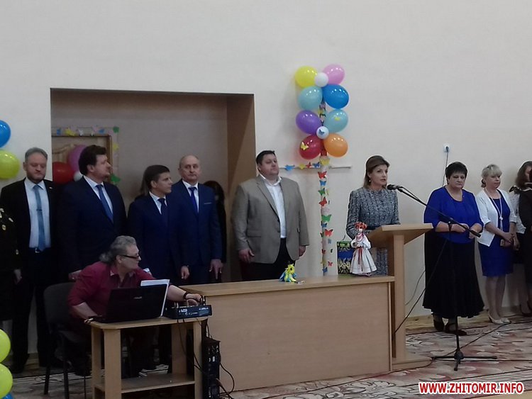 Марину Порошенко супродовджуть голова Житомирської облдержадміністрації Ігор Гундич, його заступник Ярослав Лагута та голова облради Володимир Ширма. На святі останнього дзвоника також присутні мер Житомира Сергій Сухомлин та заступник мера Матвій Хренов.