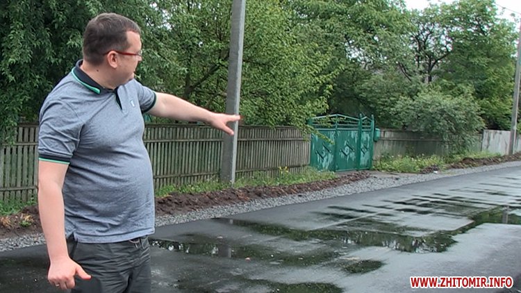 26 травня, перебуваючи у Чуднові він побачив свіже заасфальтовану вулицю, втім, якість покриття викликала у нього сумніви, оскільки на новій дорозі вже стояли калюжі після дощу, а свіжий асфальт ламається від незначного натискання.