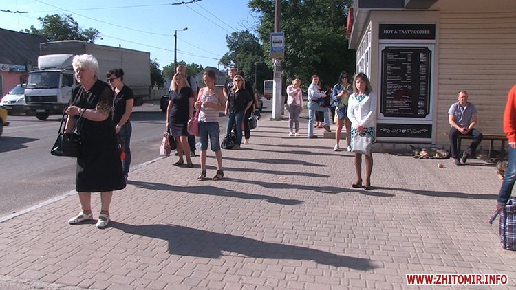 1 червня о 8:30 ранку на житомирських зупинках людно. Пасажири, які планують їхати на роботу маршруткою, підготували по 5 гривень за проїзд.