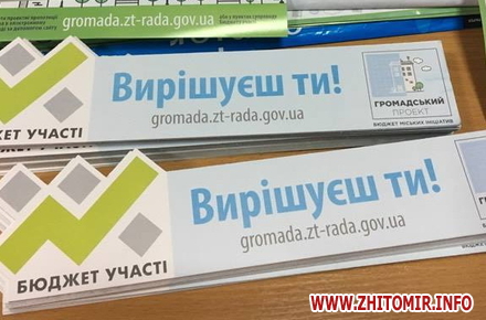 Як повідомляв Житомир.info, минулого року Житомирська міськрада отримала 67 проектних пропозицій до бюджету участі на суму більше 40 млн грн, переможцями за результатами голосування стали 11 проектів. У 2017 році на впровадження проекту «Бюджет участі» міська влада планує спрямувати близько 12 млн грн, прийом проектних пропозицій почався 1 квітня.