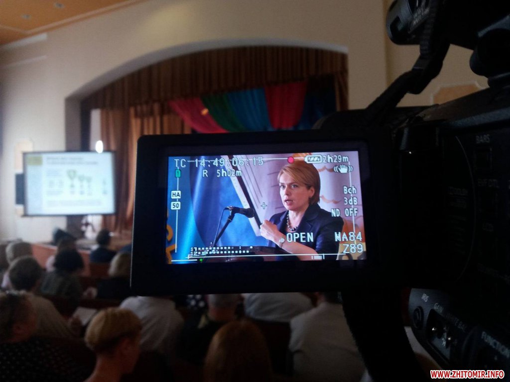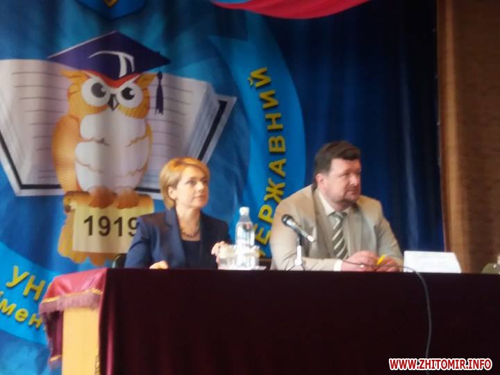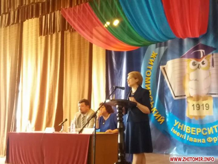 «Близько 450 освітян міста та області зібралися у ЖДУ Франка, аби зустрітися з Гриневич. Серед них викладачі, директори, методисти загальноосвітніх шкіл, інтернатних закладів, ліцеїв», - повідомляє журналіст Житомир.info.