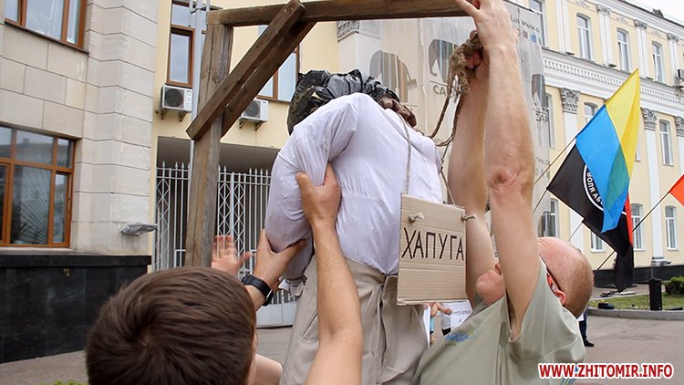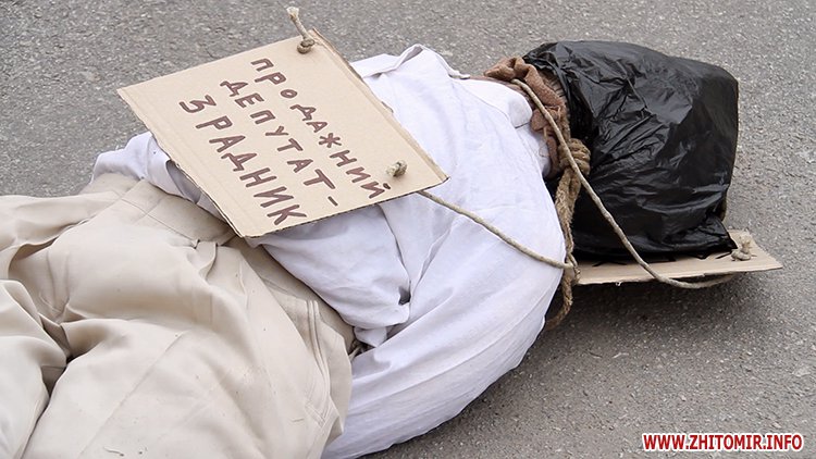 Перед тим як піднятись до кабінету Володимира Ширми, мітингарі провели публічну «страту» опудала, яке за їх словами символізує недоброчесних чиновників та депутатів.