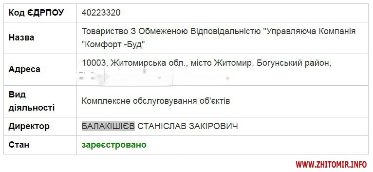 В мережі інтернет є дані, що керівником товариства з обмеженою відповідальністю «Управляюча Компанія «Комфорт-Буд» є Балакішієв Станіслав Закірович, який, як свідчать дані офіційного сайту «Об'єднання «Самопоміч» , станом на 19 червня 2017 року є контактною особою у Житомирській міській організації цієї політичної сили: