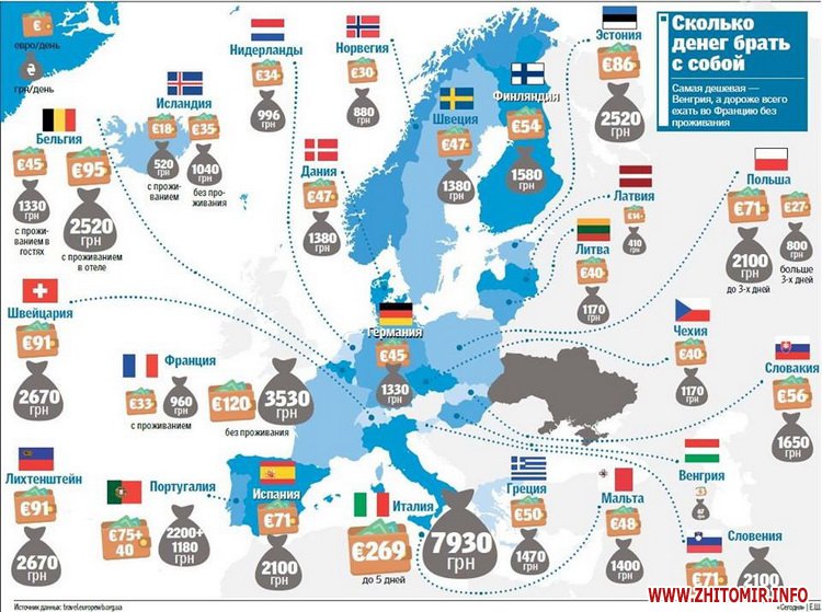 Житомирська митниця нагадує, скільки грошей необхідно мати при собі під час подорожі до кожної з країн ЄС: