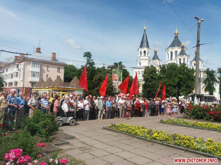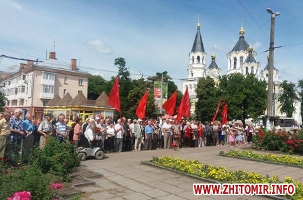 22 червня у Житомирі, на майдані Перемоги, зібралися близько сотні людей з червоними прапорами.