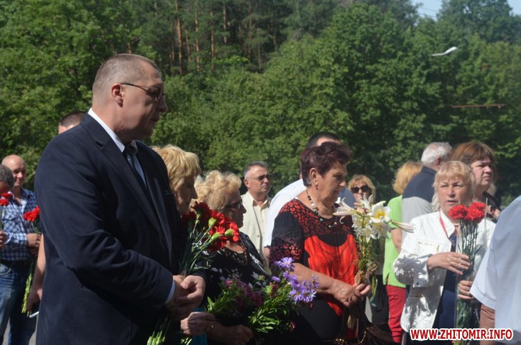 «22 червня - День скорботи і вшанування пам’яті жертв війни в Україні. Цього дня у Житомирі представники влади та громадськості поклали квіти до пам’ятного знаку «Жертвам фашизму», що на Богунії, та вшанували загиблих в роки Другої світової війни та замучених в нацистських концтаборах людей хвилиною мовчання. День скорботи і вшанування пам’яті жертв війни в Україні відзначається згідно з Указом Президента України від 17 листопада 2000 р. № 1245/2000», - йдеться у повідомленні.