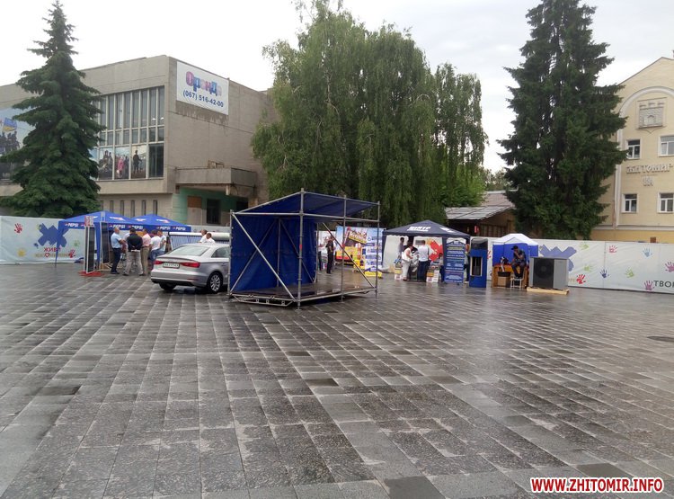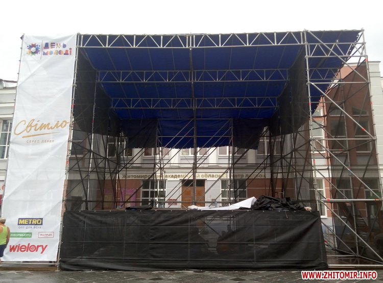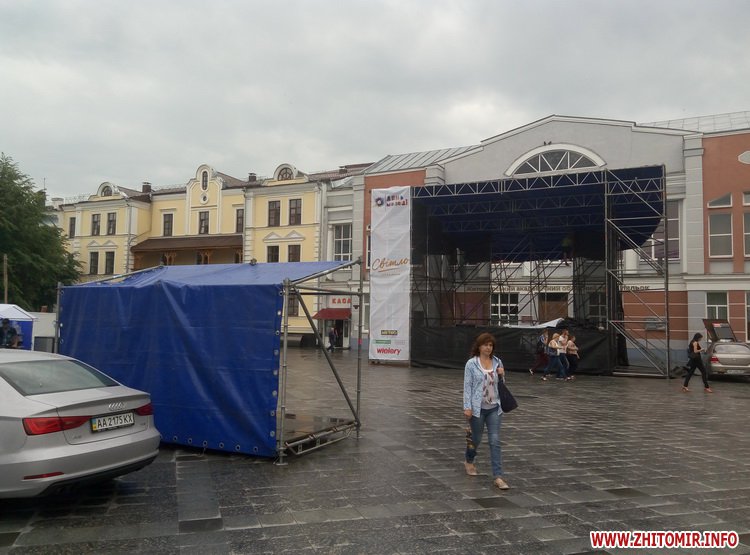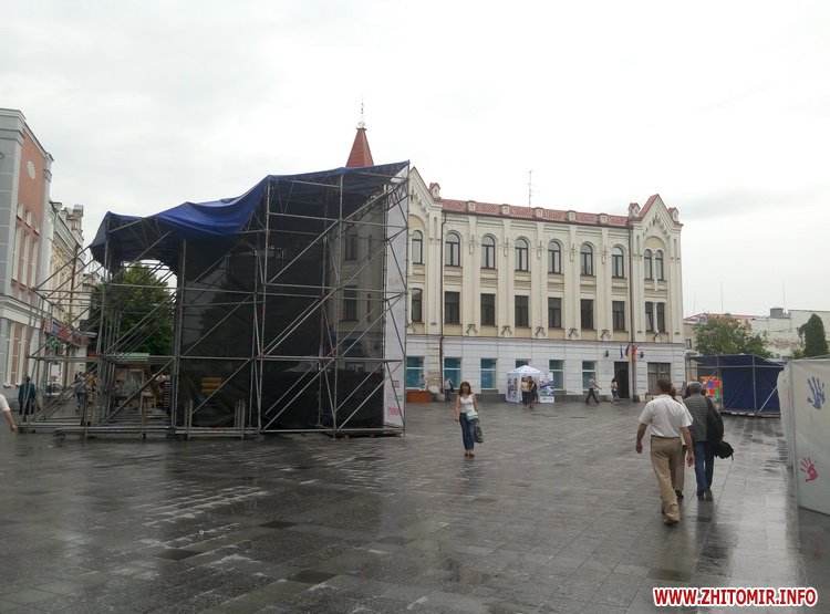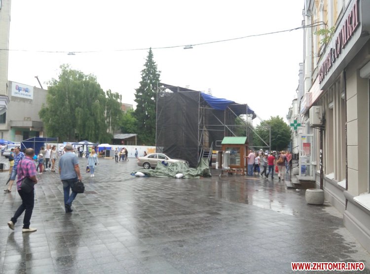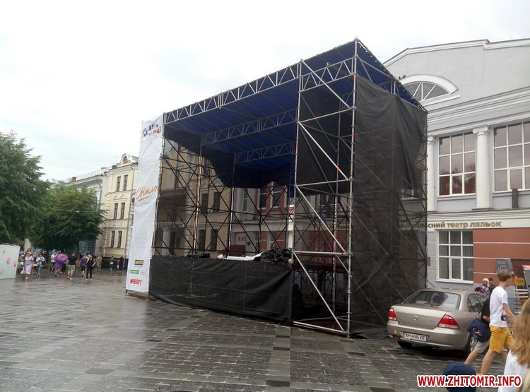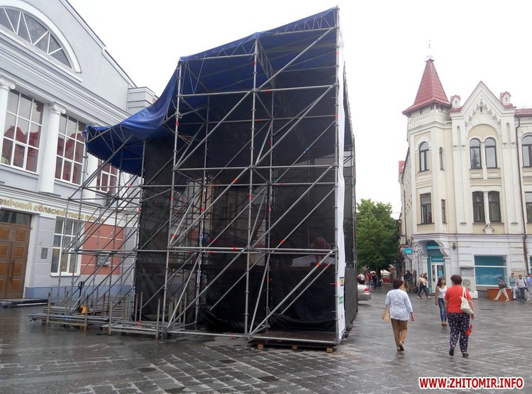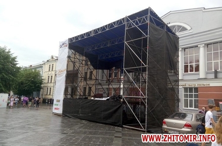 На вул. Михайлівській у Житомирі, просто посеред вулиці, упритул до фасаду обласного театру ляльок 23 червня змонтували сцену. Дерев’яну ж розбірну сцену, яка стояла ближче до колишнього ресторану «Смоленськ», демонтували і кудись вивезли.