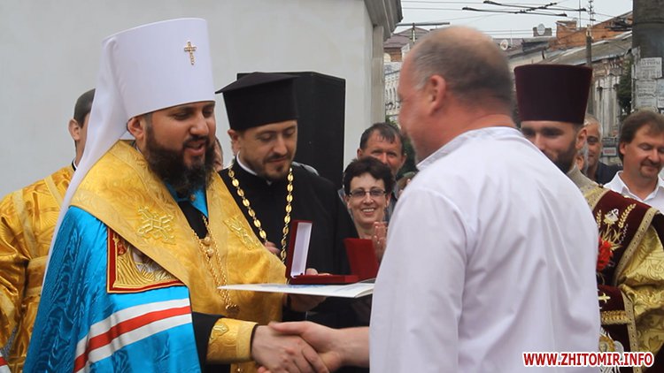 Після молебню у соборі церковнослужителі освятили пам’ятник та відзначили його творців патріаршими нагородами.