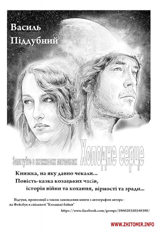 29 червня о 15:00 в Домі української культури у Житомирі відбудеться перша презентація книги «Холодне серце», автором якої є житомирянин, учасник АТО Василь Піддубний.