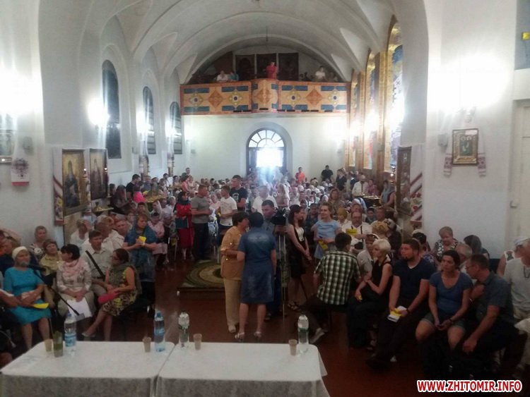 На захід прийшли кількасот вірян. Під час заслуховування звітів, настоятель житомирського Свято-Михайлівського кафедрального собору отець Богдан Бойко заявив, що складає з себе повноваження голови громади. Він хоче бути просто настоятелем собору, а господарськими справами займатиметься інша людина.